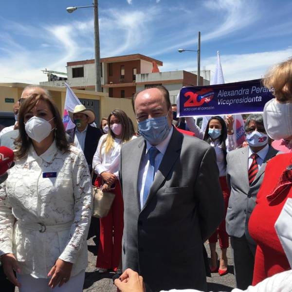 Gustavo Larrea, candidato presidencial del movimiento político Democracia Sí, llegó junto a la guayaquileña Alexandra Peralta, su binomio para que formalizar su participación en la contienda.
