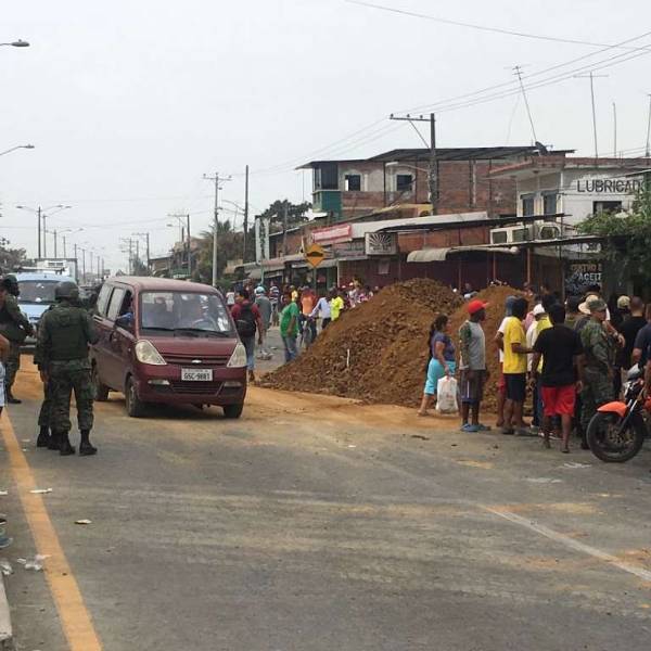 Más temprano, los dos carriles de la vía Guayaquil-Daule, a la altura de Petrillo, estaban bloqueados por montículos de tierra. La protesta comenzó a las 07:00 del lunes.