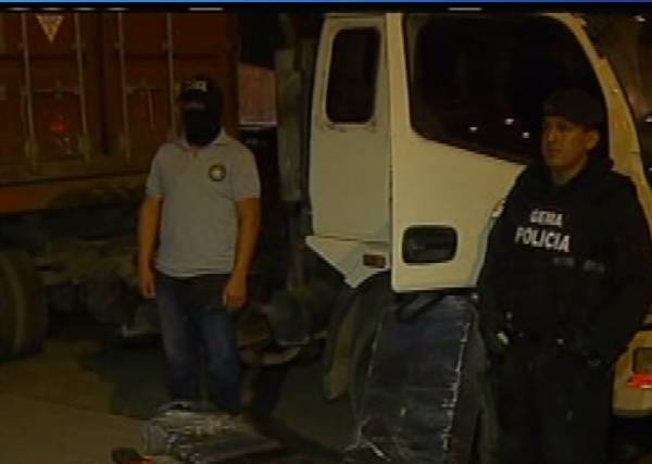 La Policía Antinarcóticos descubrió siete maletas con droga en la cabina de un tráiler que estaba a punto de ingresar al Puerto Marítimo de Guayaquil. Cuatro personas fueron detenidas durante el operativo.