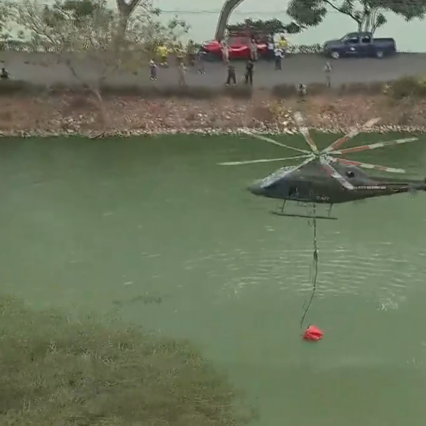 Así opera un helicóptero antiincendios en Ecuador, con un balde que carga 500 litros de agua