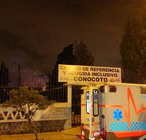 Un incendio se registró en una bodega de archivo de la Casa Hogar del Ministerio de Inclusión Económica y Social (MIES), ubicada en las calles Jaime Roldós y Ciudad del Niño, en Conocoto, sur de Quito. Un joven de 18 años con discapacidad sufrió quemaduras de primer grado en ambas manos.