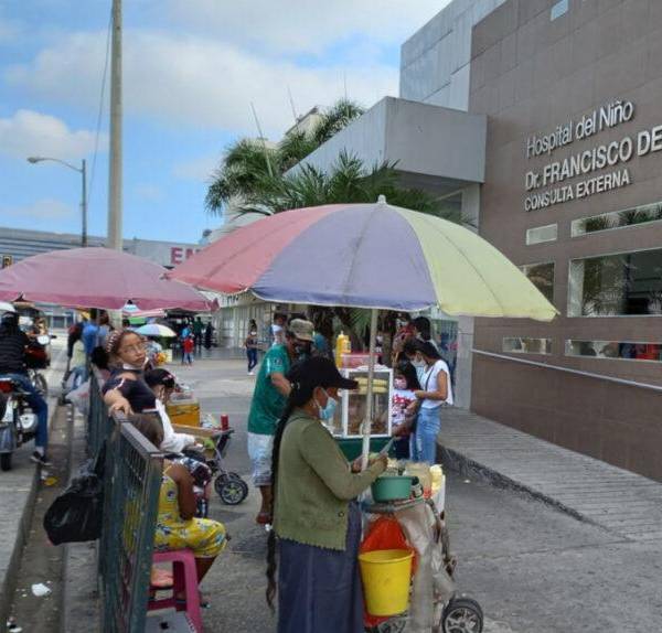 Son familias que pernoctan en los exteriores del Hospital del Niño Francisco Icaza Bustamante de Guayaquil. Además del riesgo de pasar a la intemperie, ellos comentan que deben adquirir medicinas e insumos fuera de este centro.