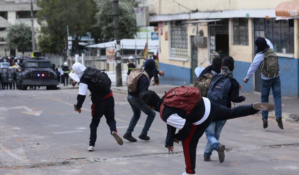 QUITO, Ecuador.- Las protestas del martes dejaron 14 menores de edad retenidos y 6 adultos detenidos. Foto: API