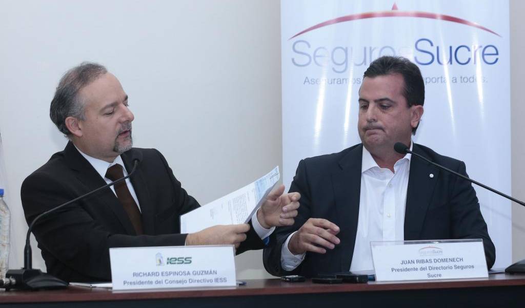 La compañía estatal Seguros Sucre entregó un cheque por 12 millones de dólares al IESS para empezar la reconstrucción de la infraestructura de esa institución. Ese monto se suma a los 10 millones entregados anteriormente para cubrir los daños en viviendas que fueron construidas con créditos hipotecarios del Seguro Social que aún estén vigentes.