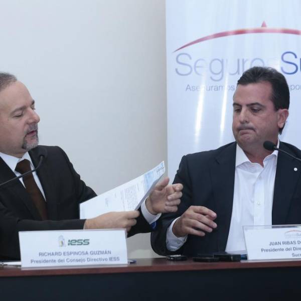 Antes de que empiecen las preguntas, en la rueda de prensa conjunta, Ribas dejó solo al presidente del IESS, Richard Espinosa. “Parece que recibió alguna llamada”.