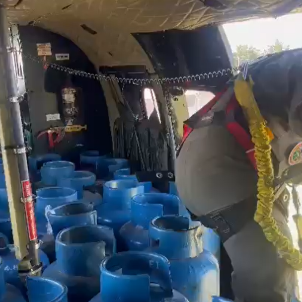Cada día, cientos de personas madrugan y hacen largas filas en los sitios improvisados de distribución. Para atender parcialmente la demanda, el Ejército realiza vuelos diarios con el helicóptero Súper Puma, que en cada viaje transporta hasta cincuenta cilindros.