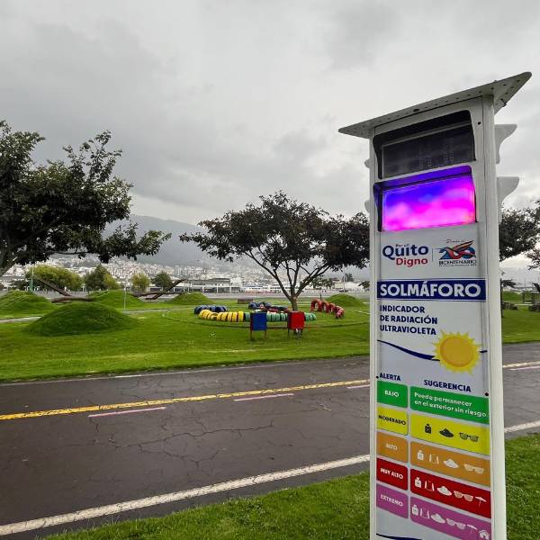 Los solmáforos miden la temperatura en el ambiente. Este corresponde al del Parque Bicentenario.( )