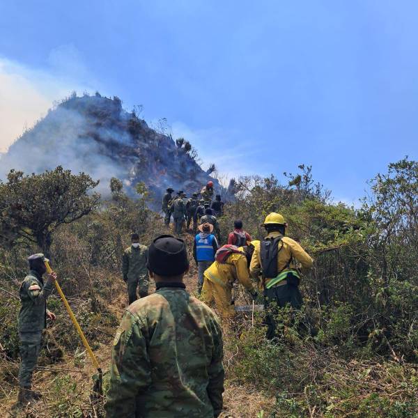 En Guamote, en la provincia de Chimborazo, bomberos y comuneros se unieron para controlar un incendio forestal en el sector San Pablo de Guantug. Las llamas arrasaron con 22 hectáreas de páramo y bosques de pino.