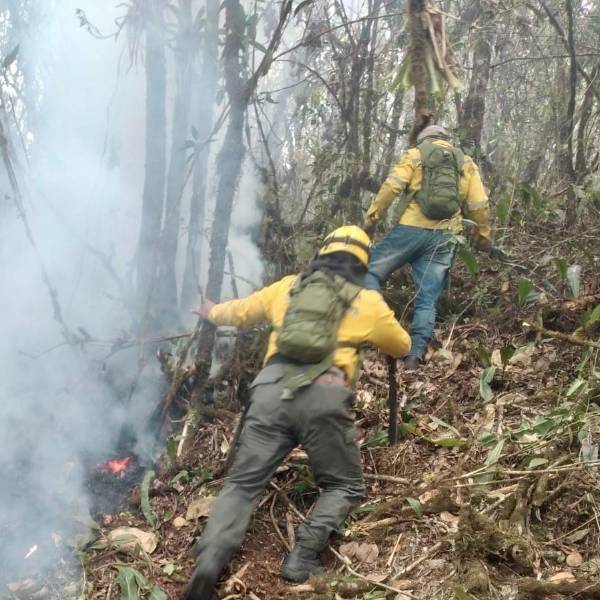 De los cinco puntos críticos, tres han sido liquidados y la labor ahora se concentra en Jeréz, parroquia Chaucha, donde el incendio ha arrasado 2 660 hectáreas; y en Quitahuayco, parroquia Molleturo. Estas son las zonas más altas de la reserva. El fuego está en los picos de las montañas, lo que añade un desafío extra: solo se puede llegar a pie tras cuatro horas de caminata.