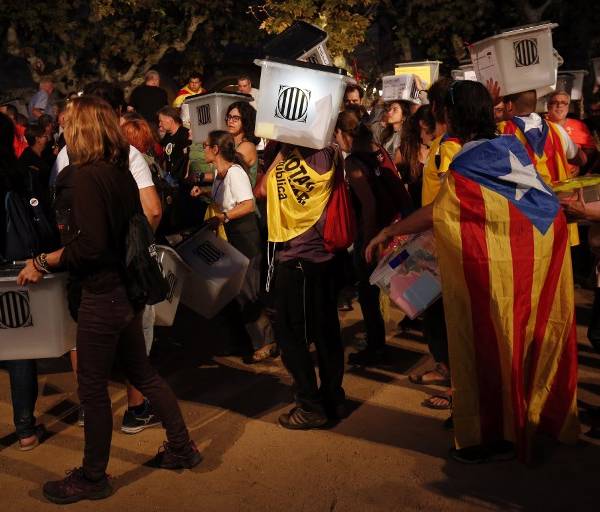A pesar de la prohibición explícita de la justicia y el envío de miles de policías por parte del gobierno español, los dirigentes independentistas tiraron adelante esta votación con la colaboración de miles de ciudadanos anónimos.