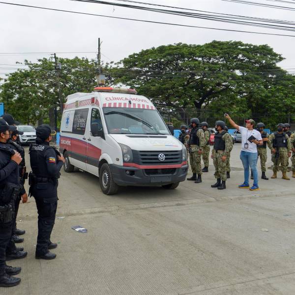 Una ambulancia sale hoy de la penitenciaría de Guayaquil (Ecuador). ( )
