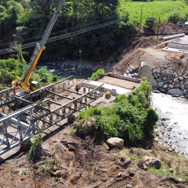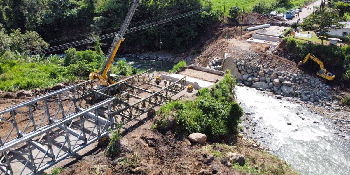 El puente se instala sobre el río Lelia, en el kilómetro 82 de la vía Alóag- Santo Domingo.