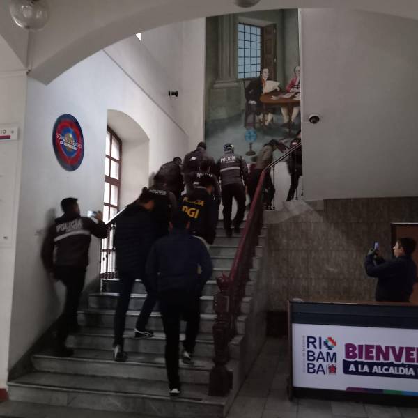 La madrugada de este jueves 30 de enero de 2025 se allanaron las instalaciones del Municipio de Riobamba (Chimborazo). Intervinieron agentes de la Policía Nacional y personal de la Fiscalía.