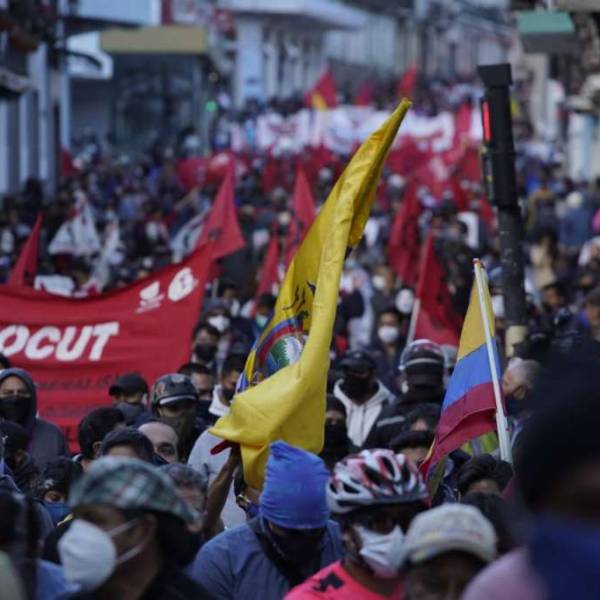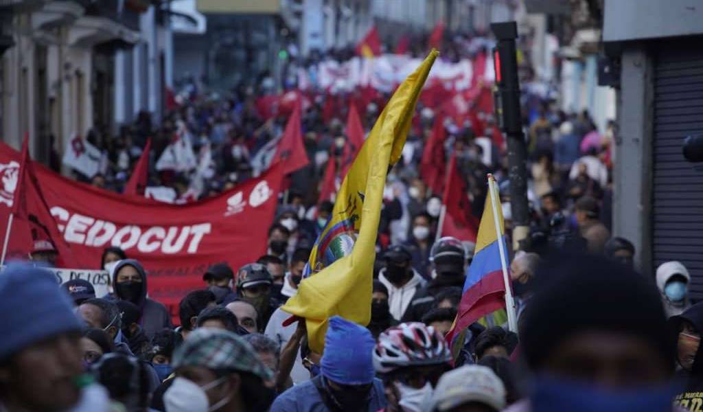 Integrantes del Frente Unitario de Trabajadores (FUT), Unión Nacional de Educadores (UNE), Federación de Estudiantes Universitarios del Ecuador (FEUE), entre otros colectivos ciudadanos protestaron en contra del régimen.