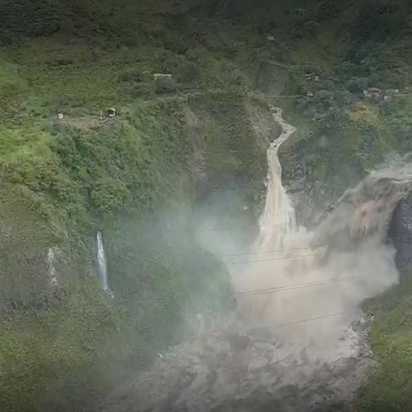 Son imágenes del Pailón del Diablo en Baños provincia de Tungurahua. La creciente del Río Verde ocasionó el desalojo de turistas de la zona.