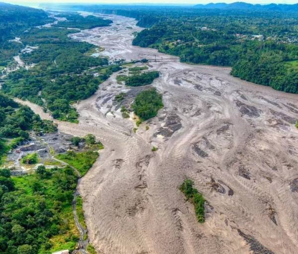 El desbordamiento del río Upano destruyó parte de una carretera en Pastaza.