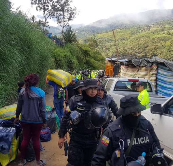 Por otro lado, los uniformados no llegaron a las minas que están ubicadas en la parte alta de la zona, que es donde operan los grupos irregulares armados. "Estamos esperando que salgan voluntariamente, luego de haber cortado los suministros y a través de eso poder recuperar ese espacio", dijo el general Hernán Carrillo Rosero, director de operaciones de la Policía.