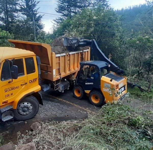 Maquinaria del Municipio limpia la calle La Tolita en Guápulo, oriente del Distrito Metropolitano. ( )