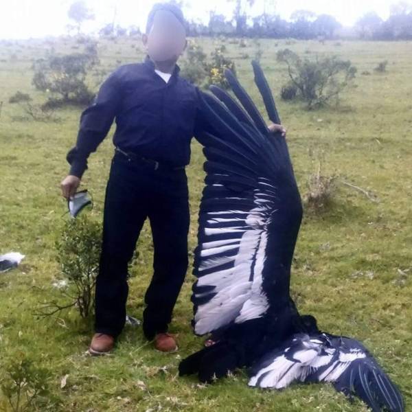 Imagen compartida por Fundación Cóndor Andino Ecuador de la persona que encontró el cóndor muerto en la provincia de Imbabura.( )
