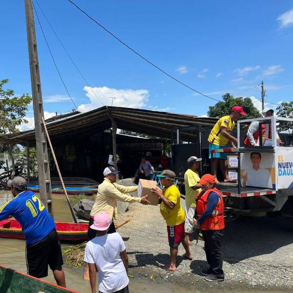 La Secretaría de Riegos entregó asistencia a 60 familias del cantón Daule, en Guayas.