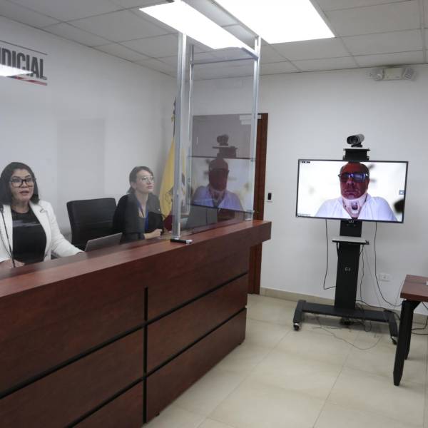 La audiencia se realizó en Quito pero Glas compareció vía telemática desde Guayaquil, donde cumple la medida de presentación periódica mientras se resuelve su situación.