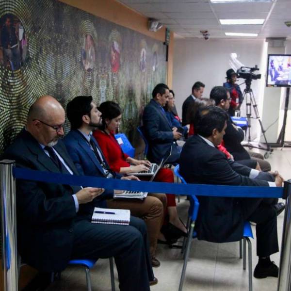 A partir de las 15H30, los jueces Manuel Viteri, Ruth Seni Pinargorte, Wendy Molina y Alfredo Ruiz fueron citados a la audiencia pública de evaluación.
