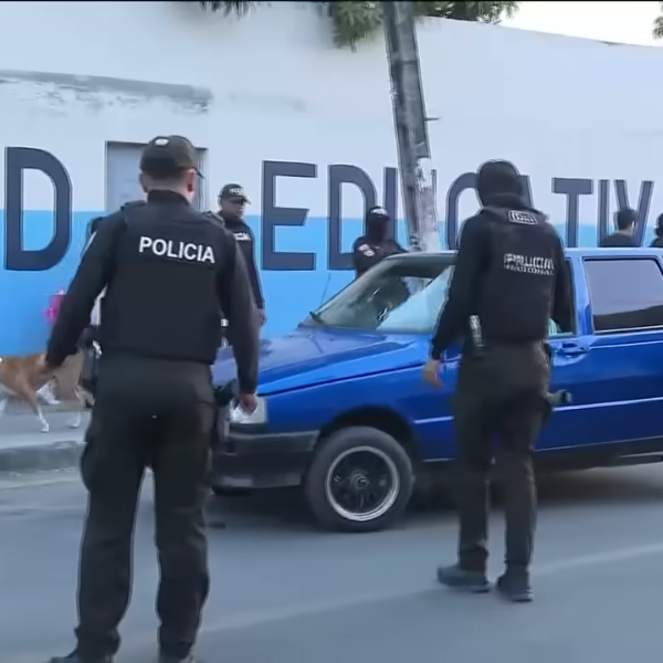 Imagen de policías en los exteriores de un colegio de Durán.( )