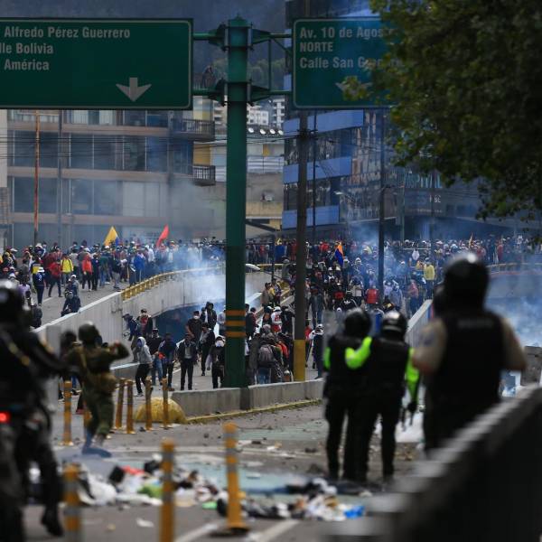 Desde el lunes las protestas se han concentrado en Quito con la llegada de miles de indígenas de las provincias andinas del norte y del centro y sur del país para hacerse sentir con más fuerza y desafiar el estado de excepción decretado por el Gobierno en seis provincias, entre ellas Pichincha, donde está la capital nacional.