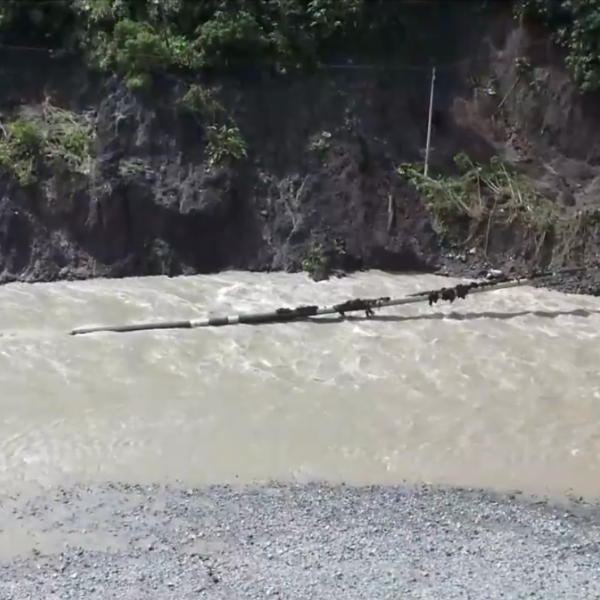Más de 60 metros de tubería quedaron expuestos a la corriente del río que arrastra piedras y palos.