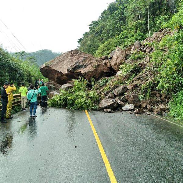 La vía Alóag - Santo Domingo se encuentra totalmente cerrada por un derrumbe de varias rocas en el kilómetro 83, en el sector Tinlandia.