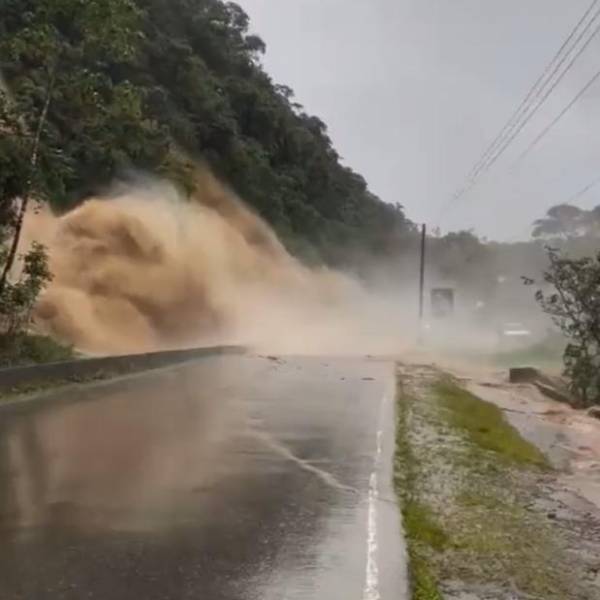 La cascada Velo de Novia se desbordó debido a las fuertes lluvias, varios vehículos se quedaron parados mientras observaban el impacto de la corriente en la vía Loja - Zamora Chinchipe. En redes sociales los videos se viralizaron, muestran cómo se desborda el agua hacia la carretera.