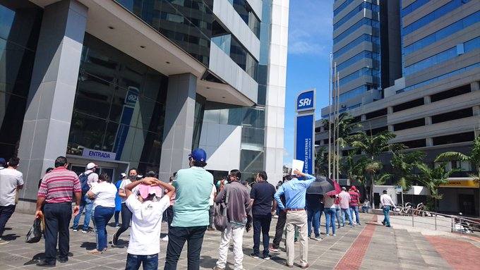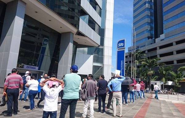 La fila bordea las instalaciones del Servicios de Rentas Internas (SRI).