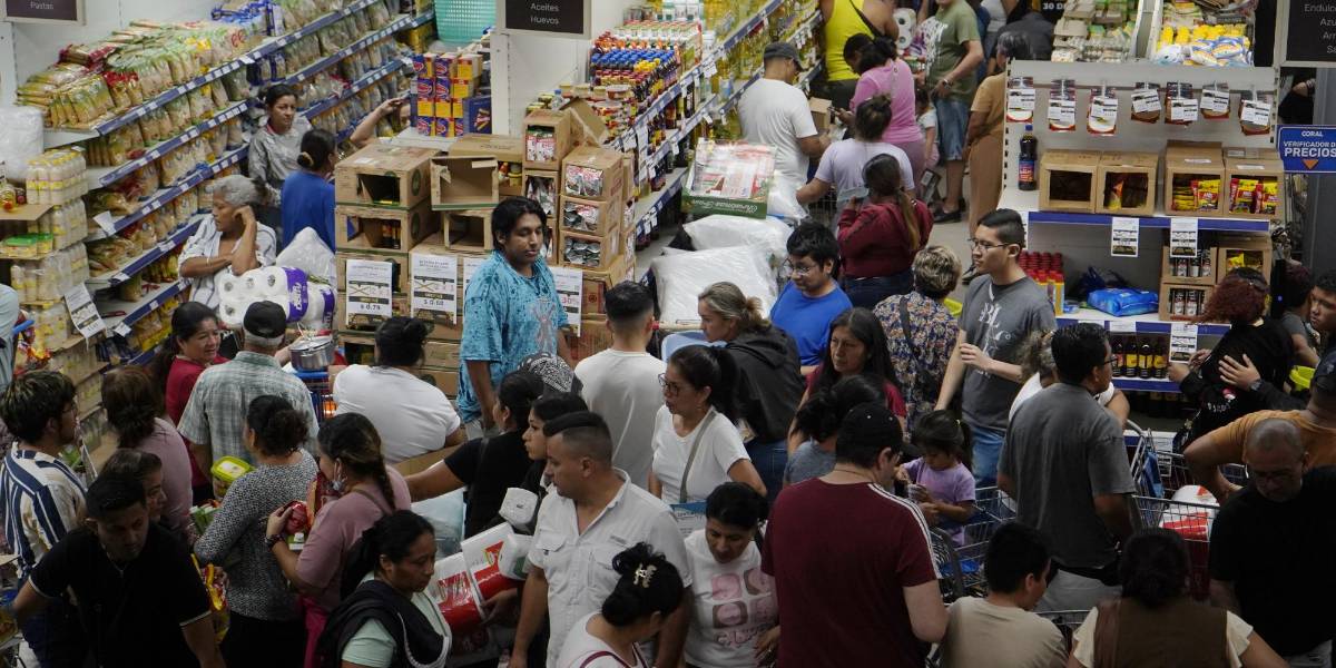 En Cuenca, videos aficionados registraron el momento en el que docenas de ciudadanos ingresaron al supermercado para realizar las compras.