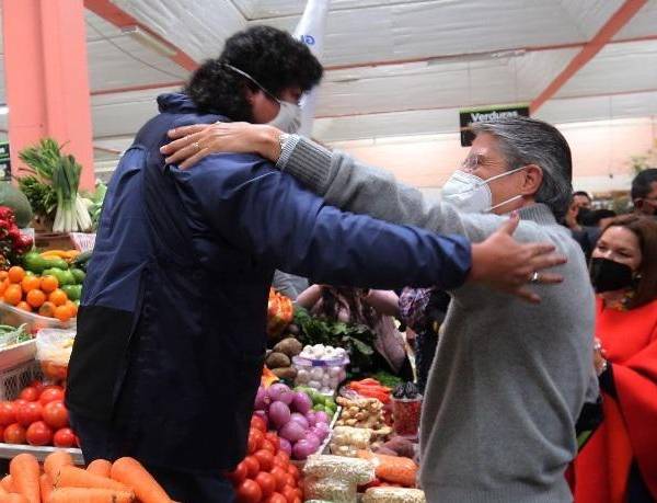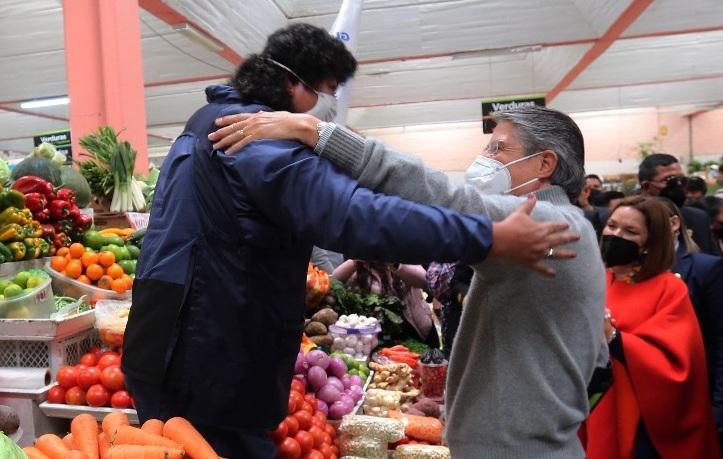 Lasso escuchó las diversas peticiones de los comerciantes del mercado, desde la vacunación contra el COVID-19, hasta la reducción de impuestos y tasas de interés de banca.