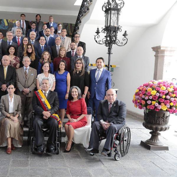 Para el último encuentro con sus ministros y secretarios, el presidente Lenin Moreno se colocó la banda y se tomó varias fotos para el recuerdo de sus 4 años de gobierno.