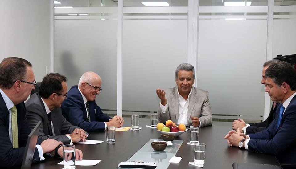 El presidente electo de Ecuador, Lenín Moreno, sostuvo una reunión el jueves 18 de mayo de 2017 en Quito con los representantes de la Asociación de Bancos Privados (ABPE). Ambas partes discutieron aspectos de la economía y políticas del sector bancario, previo a su posesión el próximo 24 de mayo de 2017 en la capital.