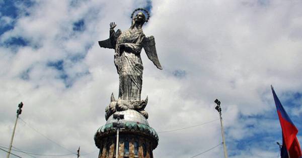 Uno de los cerros más emblemáticos de la capital ecuatoriana es El Panecillo, en cuya cima se encuentra la imagen de la Virgen de Legarda.
