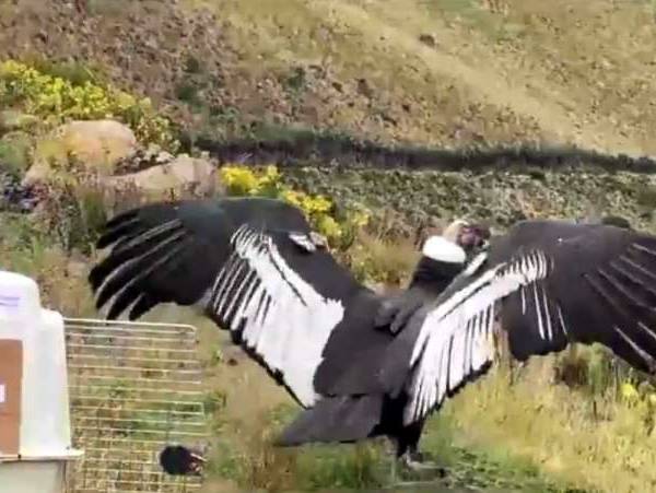 Liberan a un cóndor tras recuperarse de una herida de perdigón en Reserva Chakana