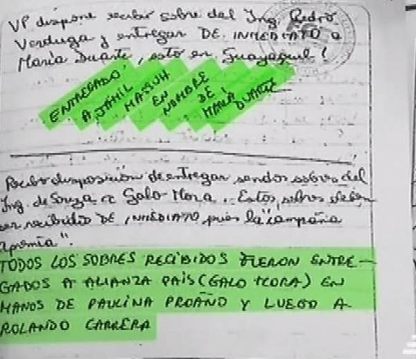 -Todos los sobres recibidos fueron entregados a Alianza PAIS (Galo Mora) en manos de Paulina Proaño y luego a Rolando Carrera.