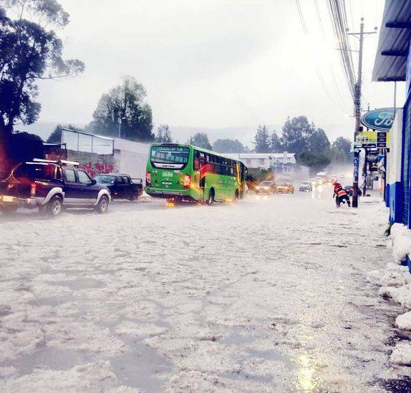 Una fuerte lluvia con granizo se registró en la Av. Ilaló y Gribaldo Miño, en Quito, el fin de semana.( )