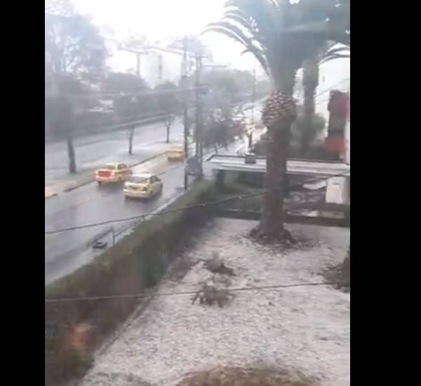 Un fuerte lluvia y granizó cayeron la tarde del lunes 23 de septiembre de 2019 sobre varios puntos de Quito.