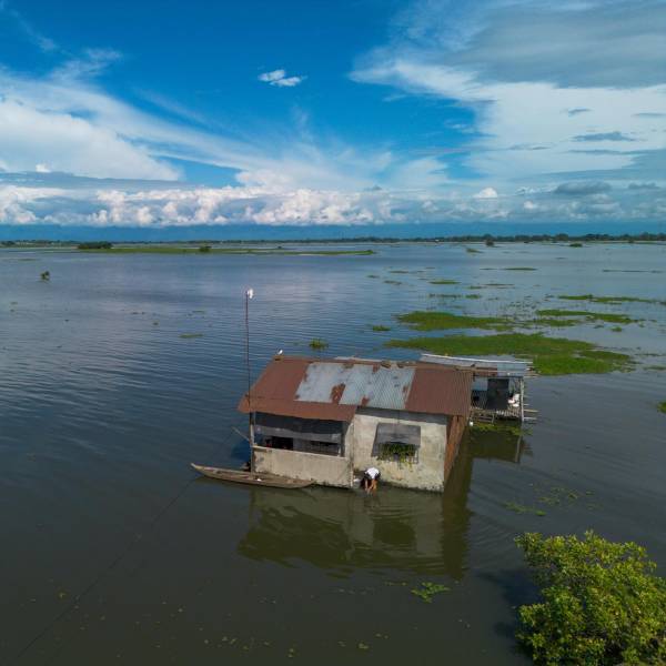 Imagen del 4 de marzo de 2025 de casas afectadas por una inundación en Jujan, Guayas.( )