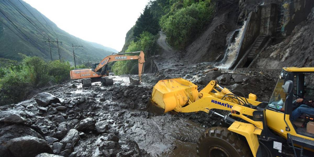 Maquinaria trabaja en la vía Baños-Puyo.( )