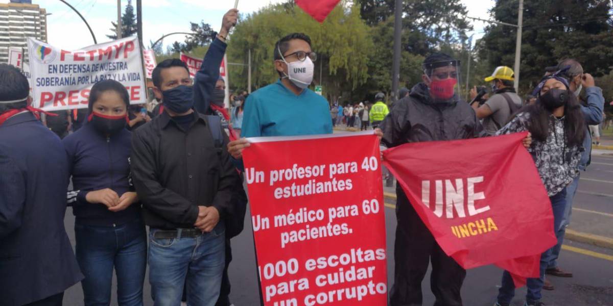 El dirigente aseguró que la UNE ha recibido el respaldo de otras organizaciones sociales como el Frente Unitario de Trabajadores, la mayor central obrera del país, y la Confederación de Nacionalidades Indígenas del Ecuador (Conaie).