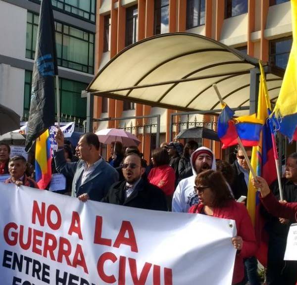 Un grupo de manifestantes se concentra en los exteriores de la Asamblea Nacional con un propósito: rechazar la aprobación del proyecto de Código Orgánico de las Entidades de Seguridad Ciudadana y Orden Público, que -entre otras cosas- plantea la creación de un Servicio de Protección Pública, integrado por civiles.