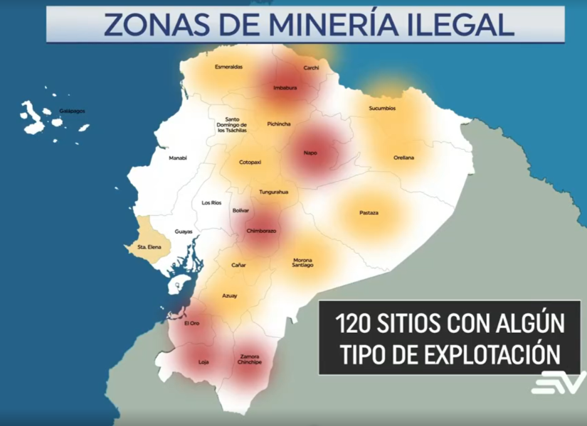 Mapa de la minería ilegal en Ecuador: en 120 sitios se realizan actividades ilícitas