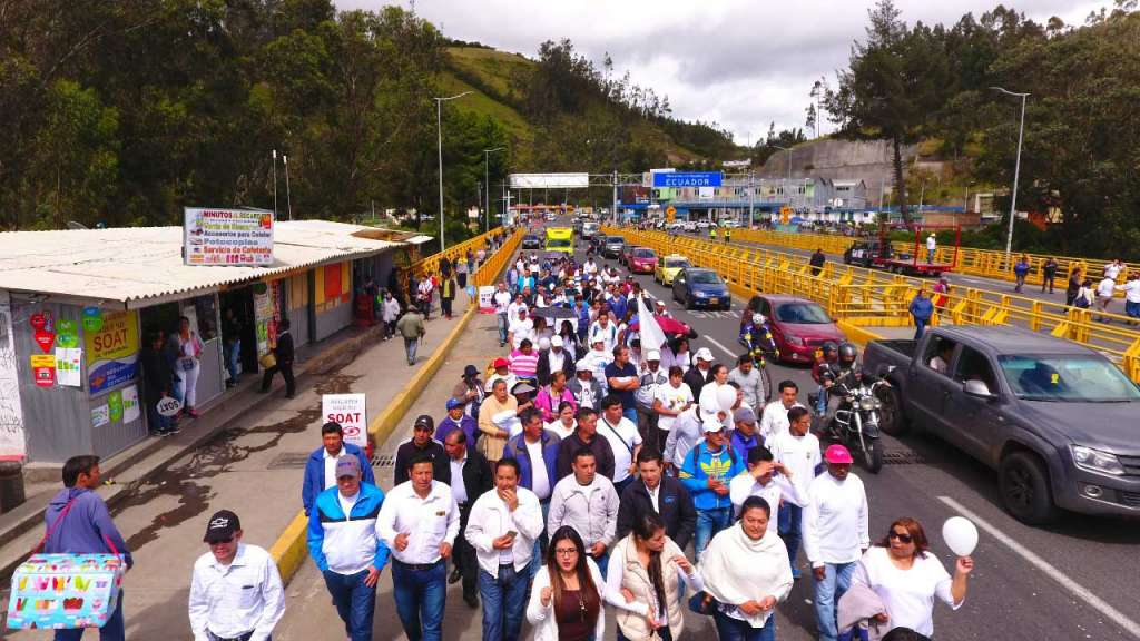 Multitudinaria marcha en sector fronterizo. Foto: Paola Andrade / Ecuavisa
