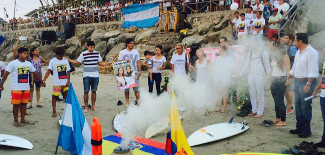 Al final de la caminata, el Club de Surfistas de Montañita entró al mar con dos coronas de flores, en honor a María José y Marina. Ya en mar adentro, formaron un círculo y despidieron a las turistas, mientras cerca de 300 personas los observaban desde el malecón.