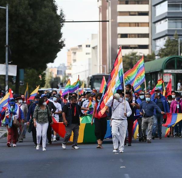 Imagen referencial de seguidores del movimiento Pachakutik marchando. Foto: EFE/ José Jácome