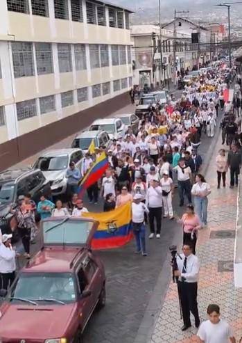 Las convocatorias se replicaron en Chunchi, provincia de Chimborazo, donde familias enteras caminaron con globos blancos y banderas del cantón.